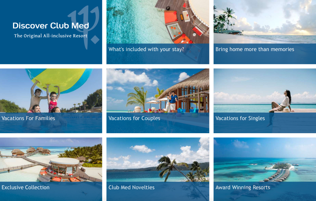Club Med a également su développer d’autres modes de communication et de commercialisation. En naviguant sur son site Internet, il est facile et rapide de trouver son bonheur et de personnaliser son séjour. Ainsi, l’entreprise prend soin de séduire des consommateurs de tout âge. En effet, certains séjours sont uniquement réservés aux adultes, d’autres correspondent mieux aux familles, sans oublier les séjours pour les voyageurs en solitaire ou pour les personnes plus âgées. Un panel d’activités est proposé pour que chaque tranche d’âge puisse trouver un loisir lui correspondant et s’assurer d’une expérience unique.